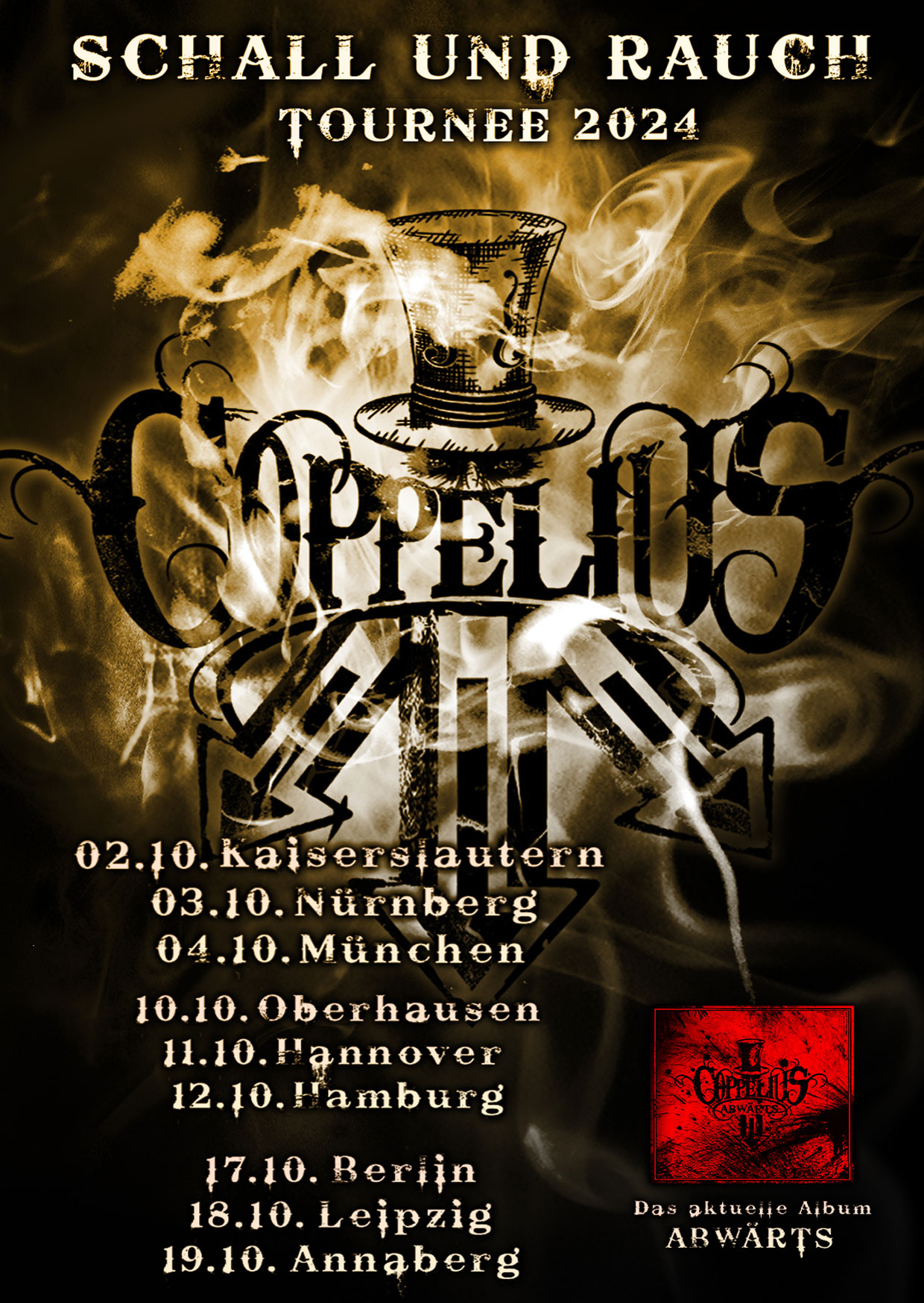 Für die Tour versprechen Coppelius Werke vom aktuellen Album Abwärts, einen Querschnitt aus ihrem Œuvre von über zwei Jahrhunderten und auch einige krude Überraschungen.
